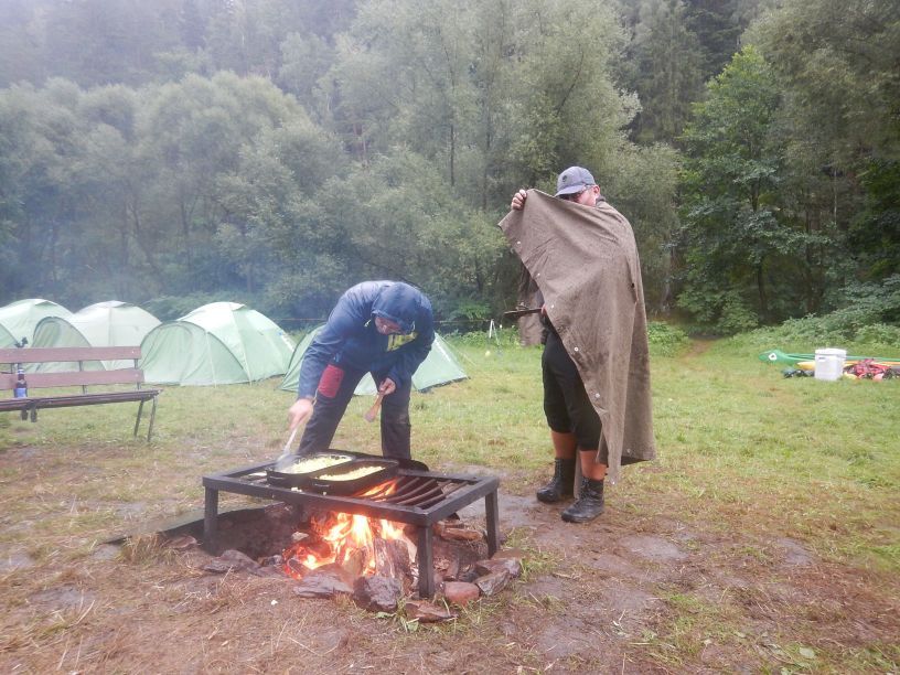 Pondělí 4.8.2025 – K ránu déšť ustal, takže jsme vyrazili na celý den do Českého Krumlova a navštívili důl v Morii. Po dlouhém rozchodu jsme nafoukli lodě a ještě jednou projeli Krumlov na lodích a dorazili do tábora. K večeři bylo výborné vepřové na paprice a poté začal makačí den, den který si makaci vedou sami a sami rovněž vaří. Na večeři se prý chystají smažit langoše, tak snad se povedou.