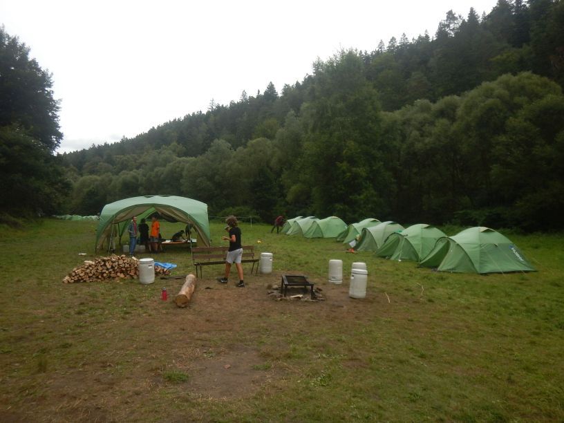Pondělí 28.7.2025 – Včera jsme po deštivé noci dopoledne zvládli nácvik jízdy na lodi na trenažéru a odpoledne vyrazili na první plavbu do Hobitína. Bilbo nám bohužel pomoc odmítl, ale cestou zpět jsem na stali svědky sněmu čarodějů, kde jsme vyslechli spoustu důležitých informací. Celý den se již obešel bez deště a i dnes to vypadá na slušné počasí, chladno, ale neprší, občas i sluníčko vykoukne. Dnešek strávíme na louce a okolním lese, bude DPH-Den Plný Her. Zítra nás čeká dřívější vstávání a přesun na horní úsek Vltavy do Vyššího Brodu, odkud pojedeme na lodích na tábořiště Na Trojce.